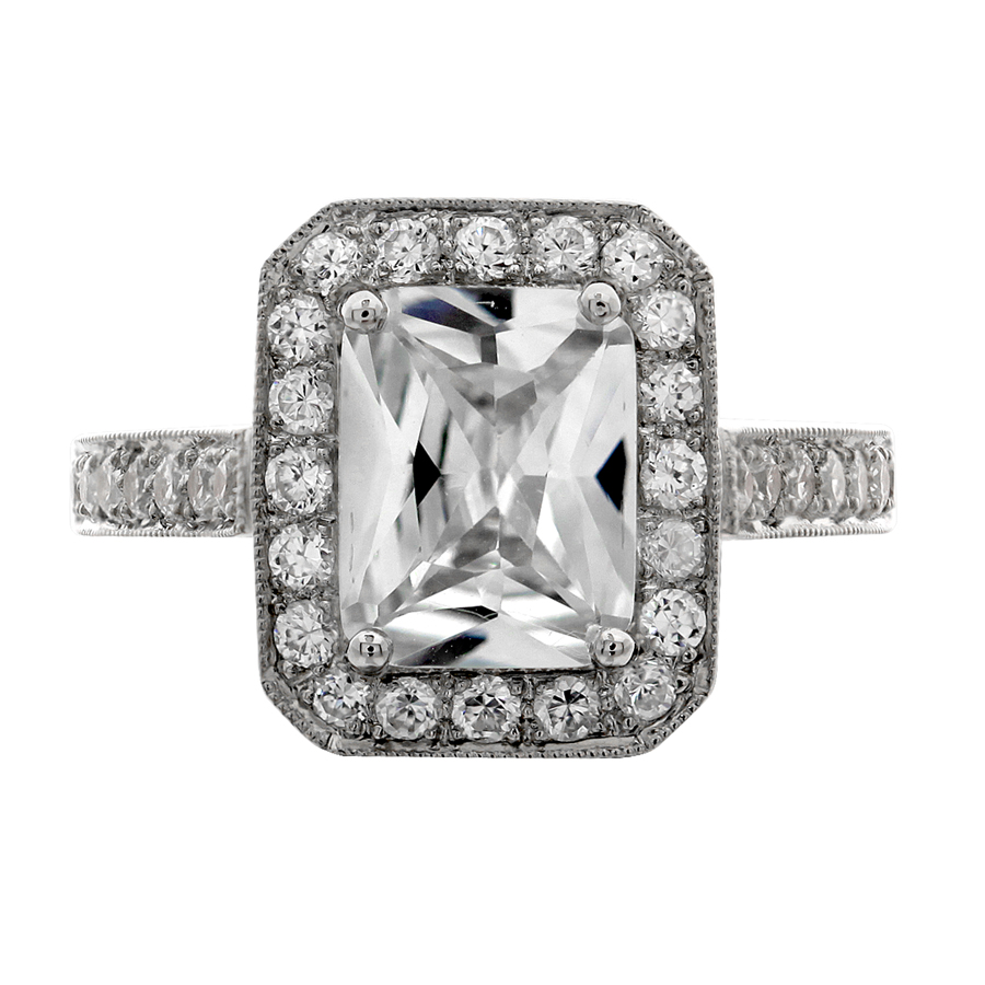 Halo ring emerald outline emerald cut center